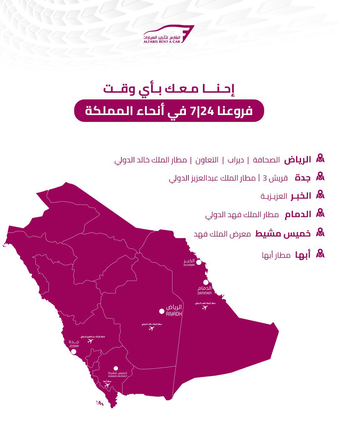 Founded in 2000 in Khamis Mushait, Al Faris Rent a Car has grown into one of Saudi Arabia’s leading car rental companies, with over 5,000 vehicles and more than 30 branches spanning major cities and airports across the Kingdom  .